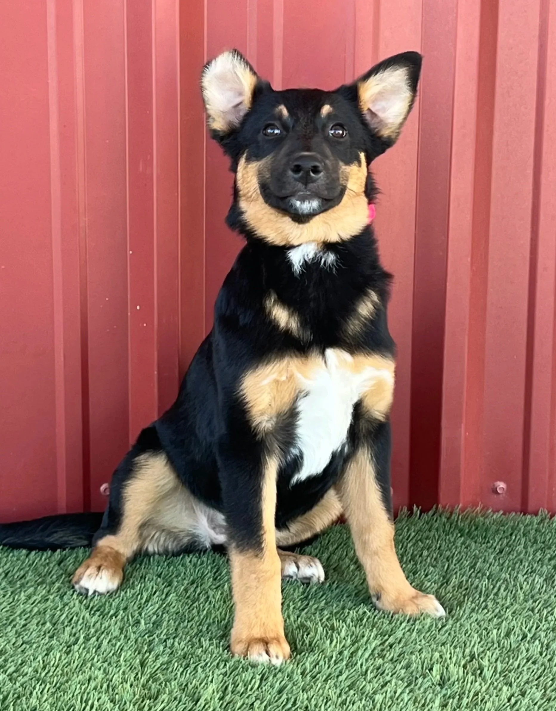 Now about 16 weeks old, this stunning Shepherd mix has officially left her "dumpster days" behind and is ready to find a family that will cherish her forever.
